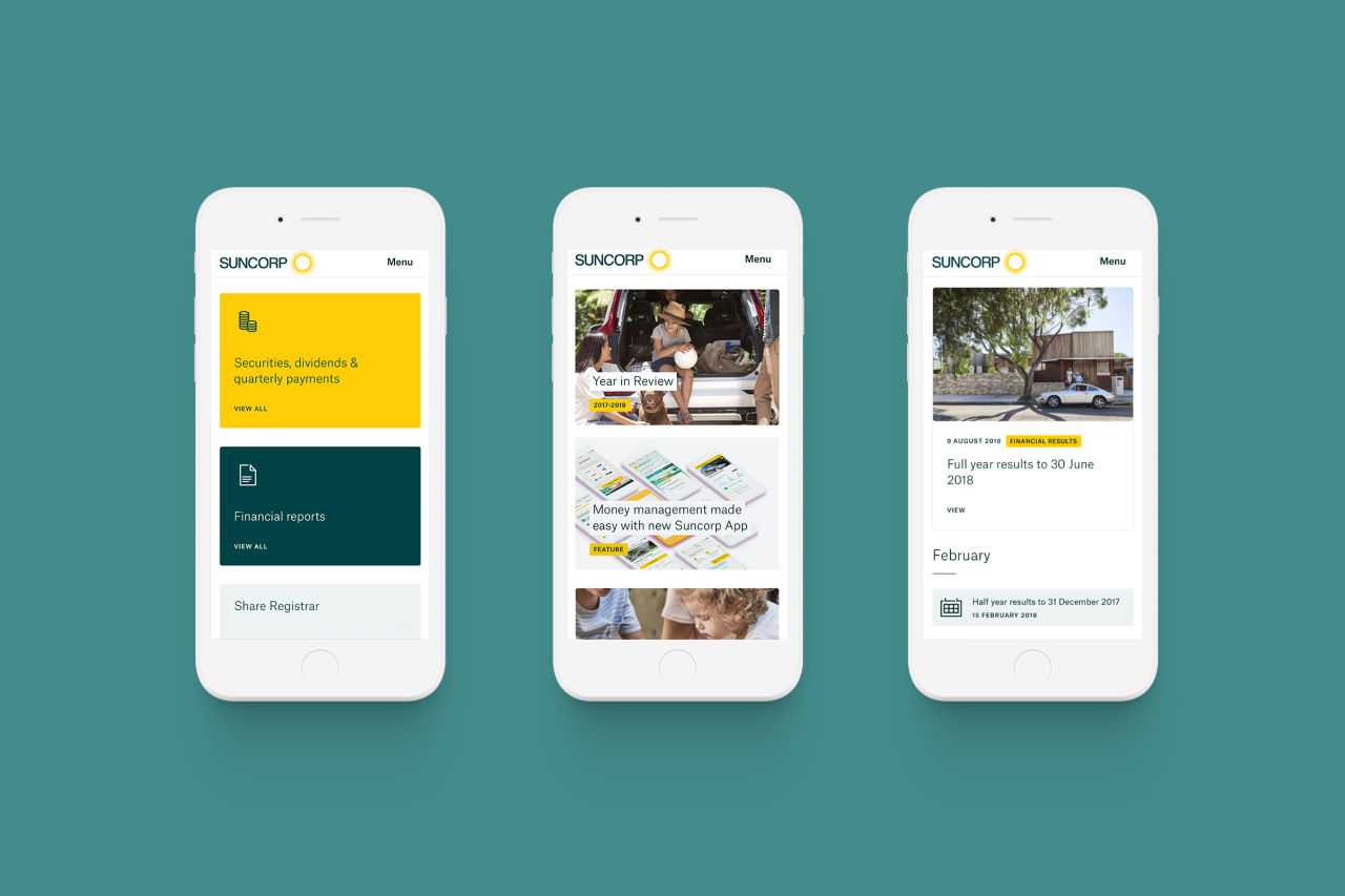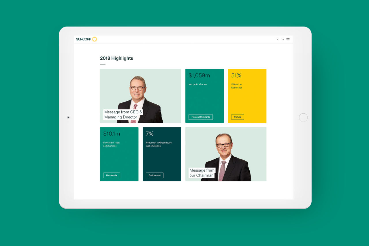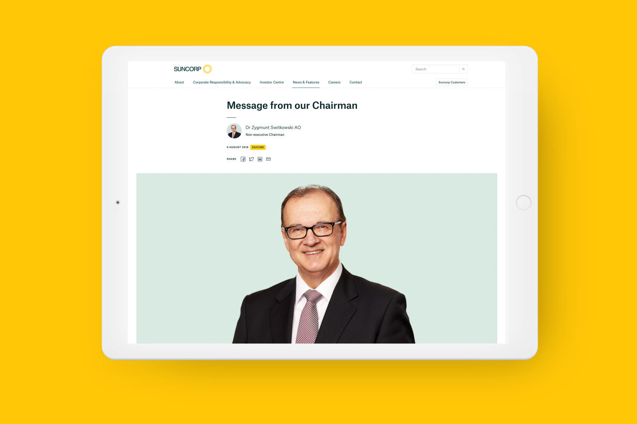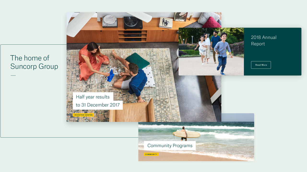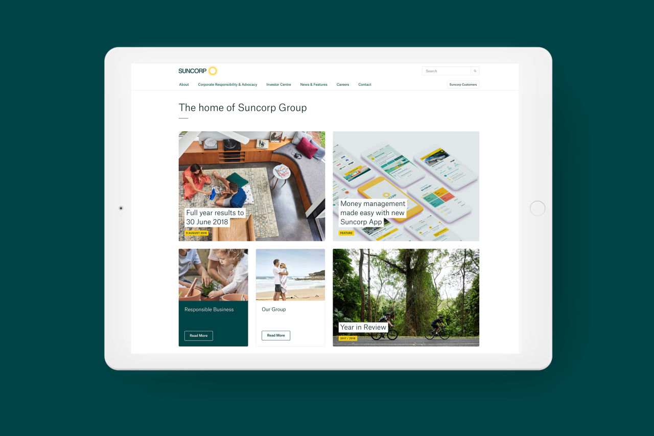 Suncorp Group has a network of brands and over 9 million customers. Their communications cover a broad range of interests including investment, advocacy, corporate governance and company culture. With this in mind, our challenge was to make information easy to find, access and digest for each different stakeholder audience. We worked with Suncorp Group to develop a content strategy and website structure that achieves a simple and intuitive user experience.