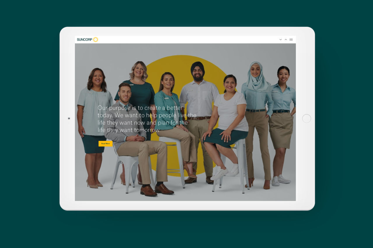 Suncorp Group has a distinct visual identity composed of strong, simple brand elements. Using these elements, we developed their brand into a flexible design system that leverages universal design principles. By translating Suncorp Group’s design language (typography, iconography, colours and imagery) into a collection of configurable components (including buttons, cards, text, statistics and media), we were able to empower the client with the building blocks they needed to create new, engaging branded content.